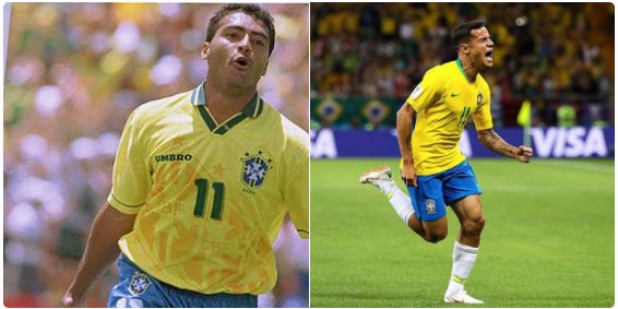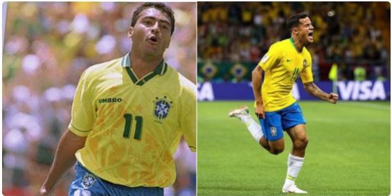 Coincidência?: Em 1994, o 1º gol do Brasil no cominho do tetra, foi de Romário, que era o 11, começou no profissional do Vasco e jogou no Barcelona. Em 2018, 1º gol foi de Coutinho, camisa 11, formado no Vasco e joga no Barcelona.