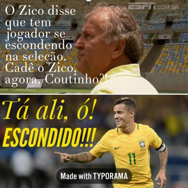 Meme rebate declaração de Zico criticando Philippe Coutinho