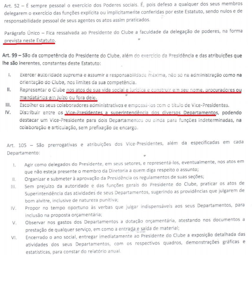 O grupo de Campello se baseia nestes trechos do estatuto do Vasco para alegar que cumpriram as regras na ausência do presidente: