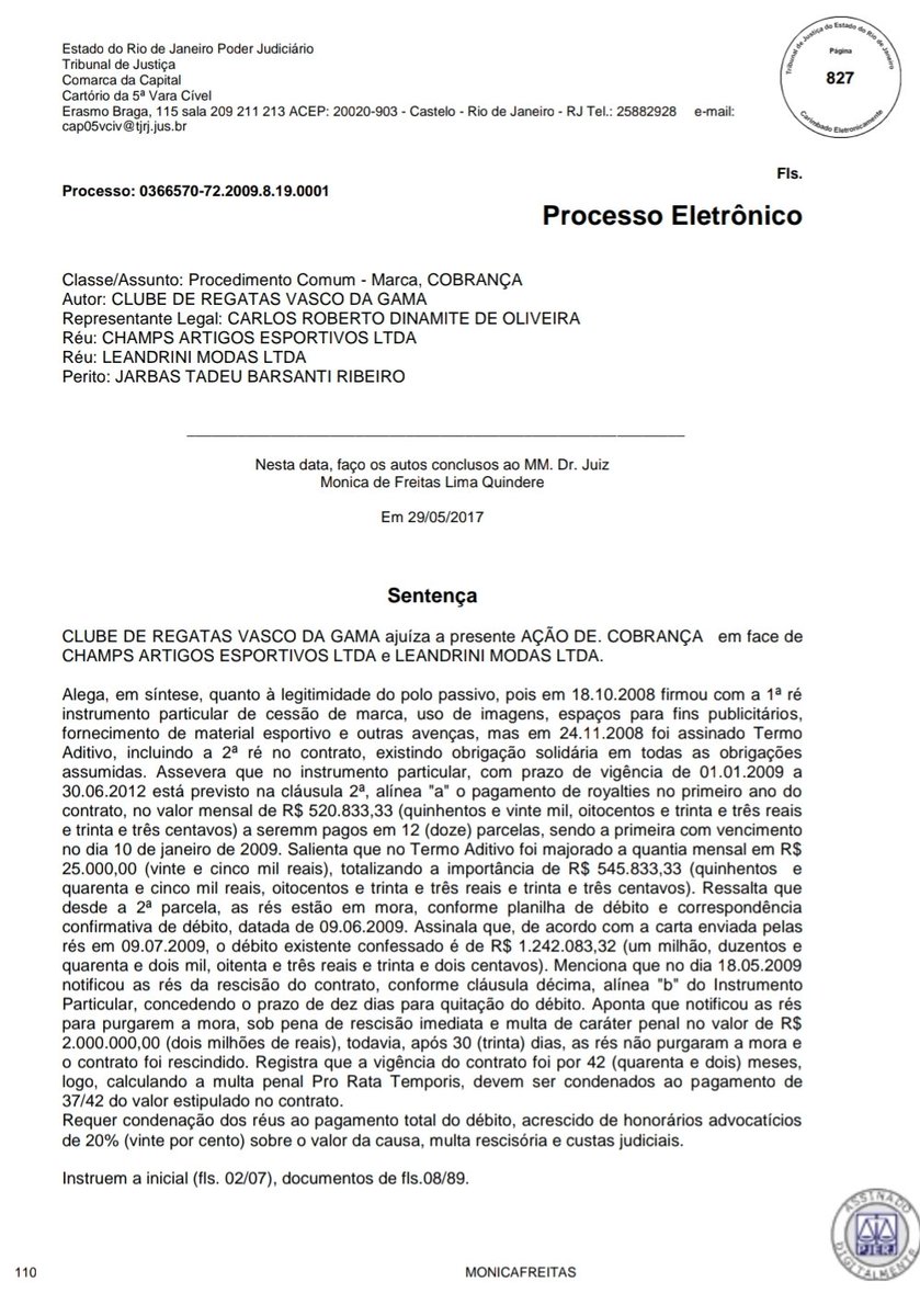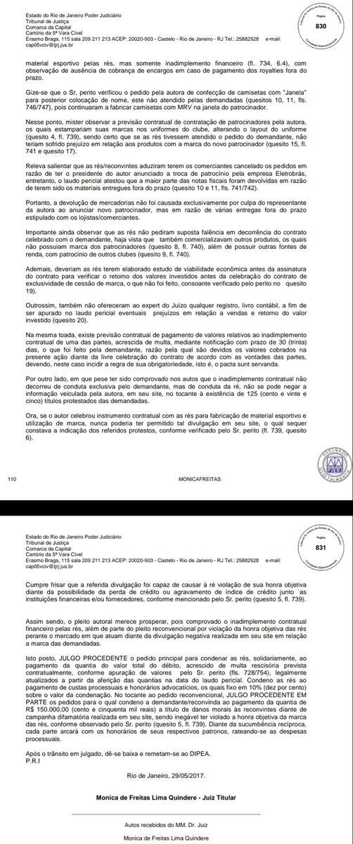 Subiu neste mês pra 2a instância (8a Câmara Cível TJRJ com relatora desembargadora Norma Quintes) ação entre Vasco e Champs que corre desde 2009. Em maio de 2017, sentença da juíza Mônica Quindere (5a Vara) condenou empresa a cerca de R$ 3 mi e clube a R$ 150 mil. Espia #lanceVAS