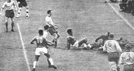 A seleção do País de Gales, mesmo cansada por ter enfrentado um jogo-desempate contra a Hungria (venceu por 2 a 1) dois dias antes, pela 2ª colocação do Grupo 3, enquanto o Brasil teve quatro dias para descansar, resistiu bravamente ao poderoso ataque brasileiro. Mas caiu aos 21 minutos do 2º tempo com um gol do garoto Pelé [Santos]. O Brasil estava na semifinal da Copa do Mundo.