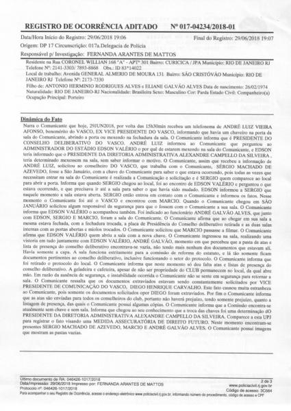 O Boletim de Ocorrência feito por Roberto Monteiro, presidente do Conselho Deliberativo, há pouco. #gevas