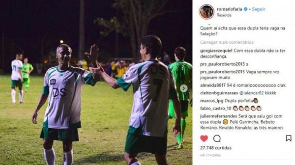 Para completar, Romário ainda postou um vídeo com algumas jogadas da dupla e uma comemoração especial.
