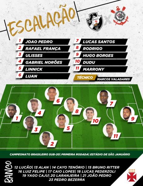 Juniores: Veja a escalação do Vasco para a estreia no Brasileiro Sub-20 contra o Corinthians