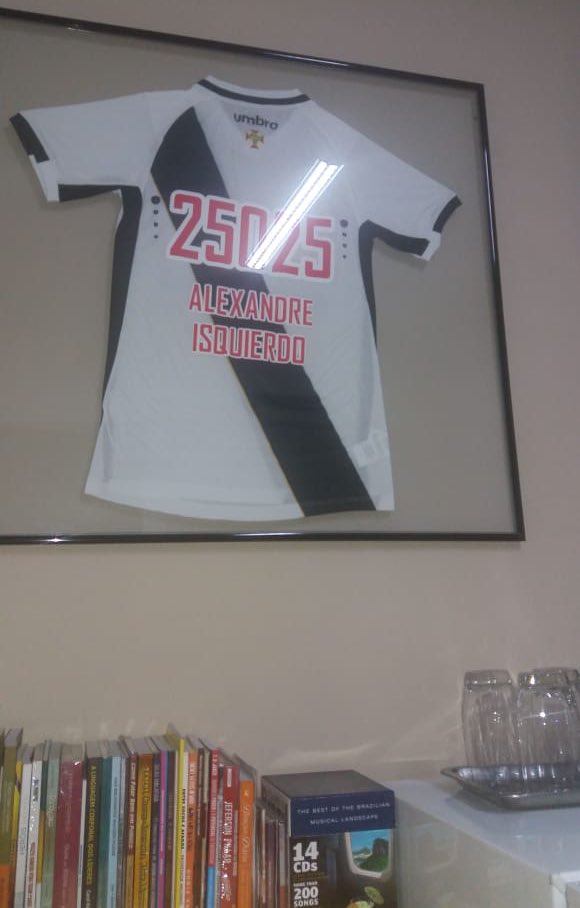 Um detalhe que chama a atenção no gabinete do vereador Alexandre Isquierdo, que vem atuando em prol do CT: camisa do Gigante personalizada na parede.