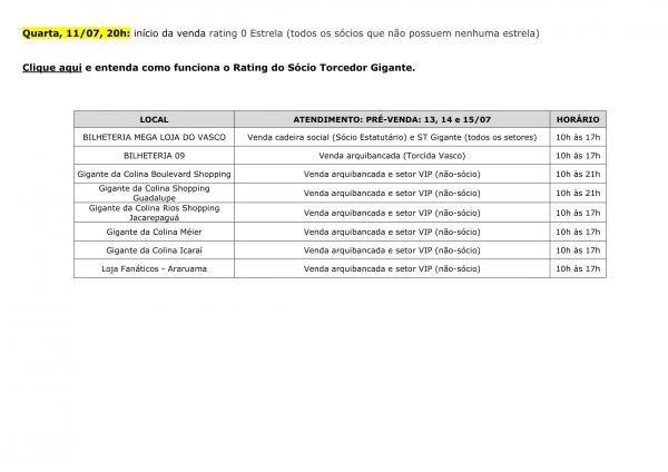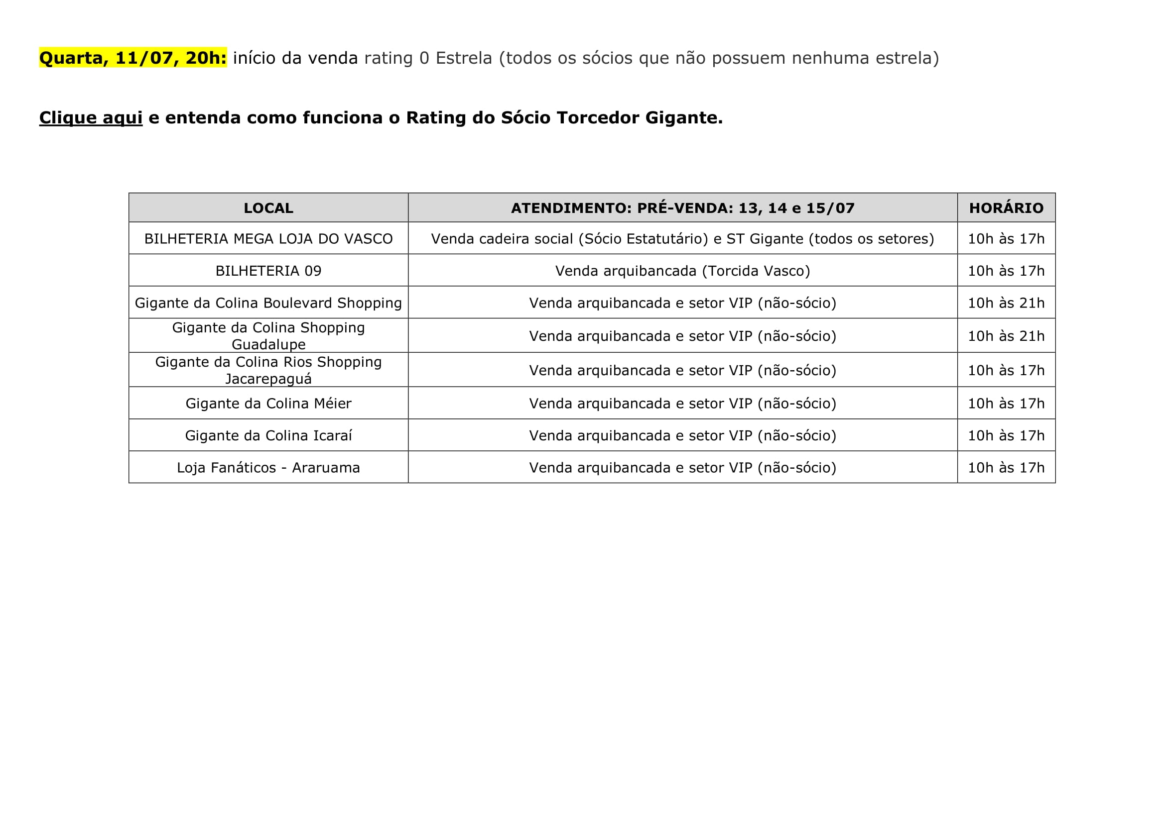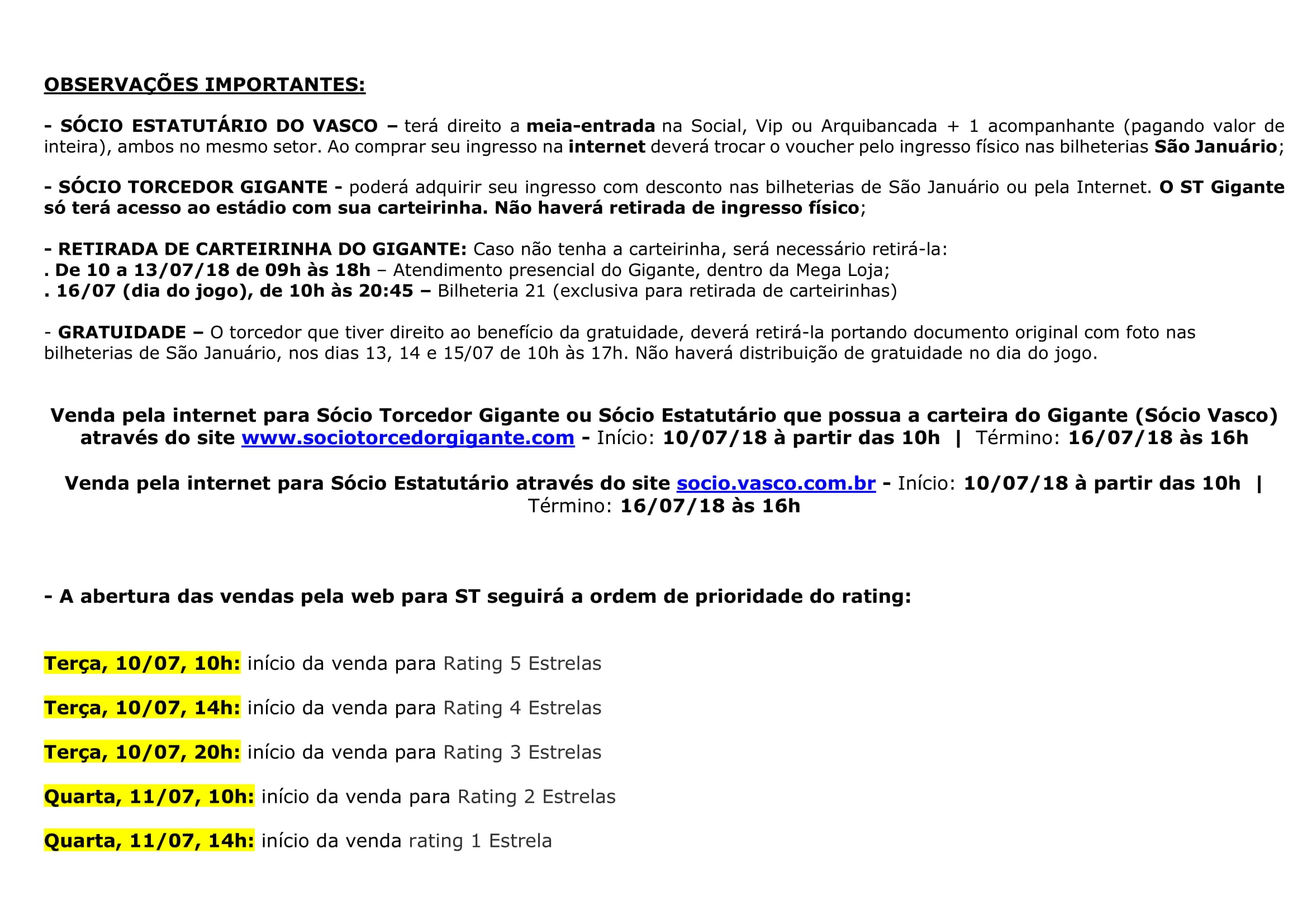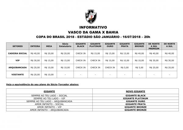 - Com os preços bem baixos, a expectativa é que o vascaíno aproveite para lotar o estádio e transformar São Januário em caldeirão. A torcida será fundamental para que a gente supere o Bahia e avance na Copa do Brasil – disse o Presidente do Club, Alexandre Campello, acrescentando que outras ações positivas serão destacadas em breve pela diretoria: