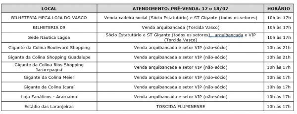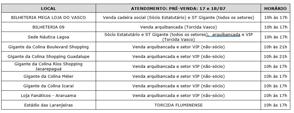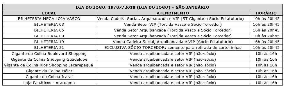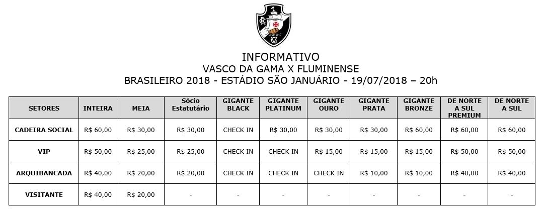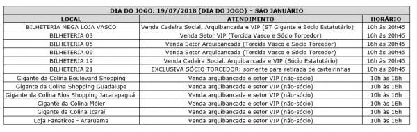 - GRATUIDADE – O torcedor que tiver direito ao benefício da gratuidade, deverá retirá-la portando documento original com foto nas bilheterias de São Januário, nos dias 17 e 18/07 de 10h às 17h. Não haverá distribuição de gratuidade no dia do jogo. Menor de 12 anos só poderá retirar sua gratuidade, acompanhado de um representante legal.