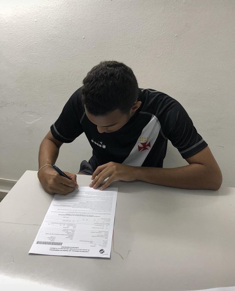 O zagueiro João Menezes, do sub-17, assinou o seu primeiro contrato profissional com o Vasco. O novo vínculo terá duração até 2020. Parabéns, garoto! 👏🏼