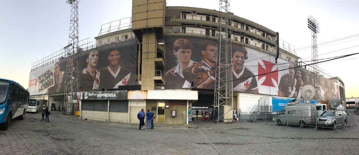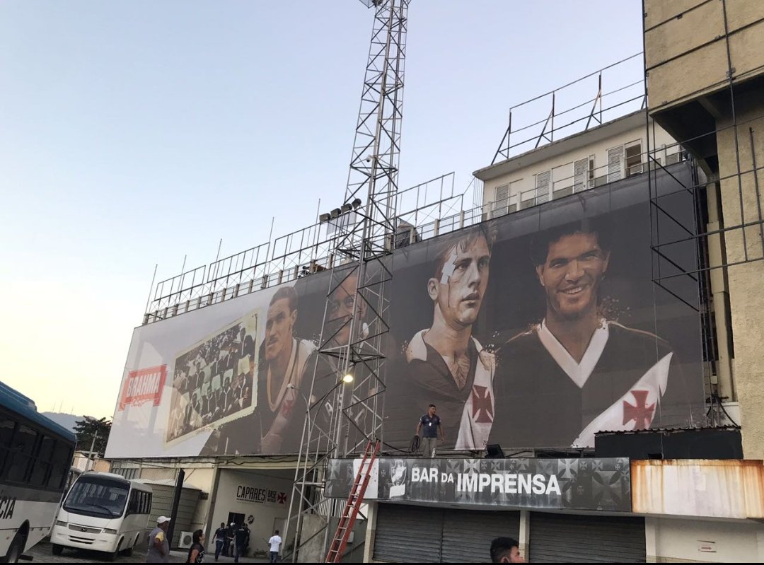 Painéis com ídolos da Vasco. Deu outra cara para o local. Baita iniciativa.