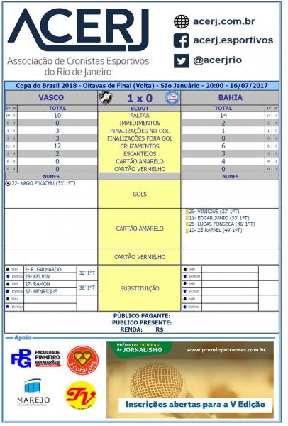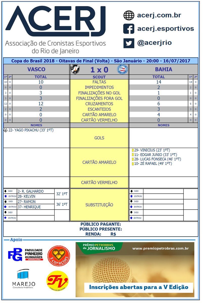 Scout do 1º Tempo de Vasco e Bahia pelas Oitavas de Final (Volta) da Copa do Brasil 2018 em São Januário #acerjinforma #VASXBAH #CopaDoBrasil