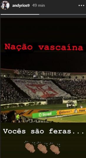 Andrés Ríos, via Instagram: 'Nação vascaína, vocês são feras'