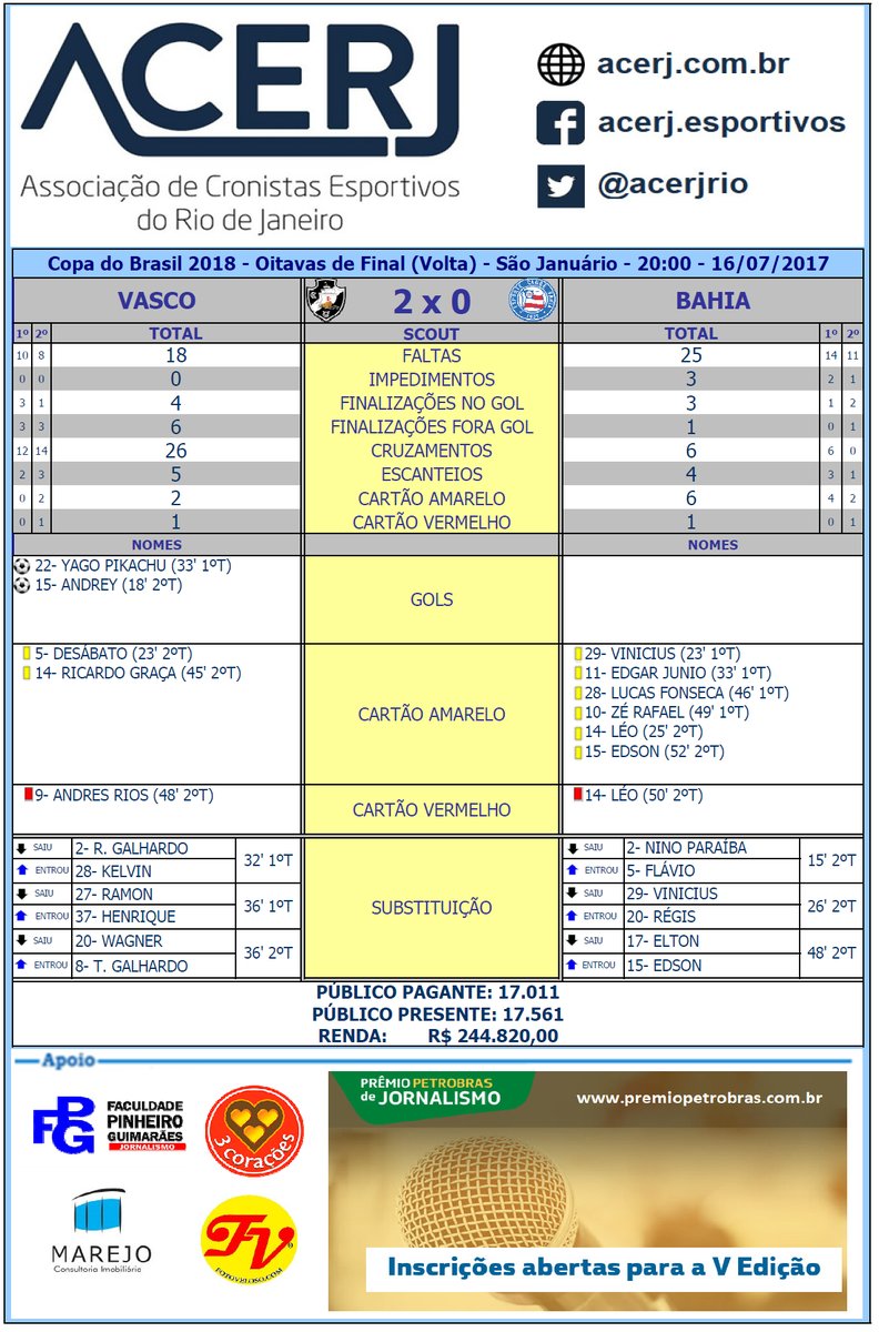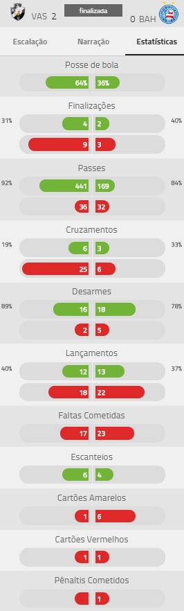 Confira estatísticas de Vasco 2 x 0 Bahia