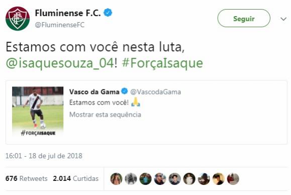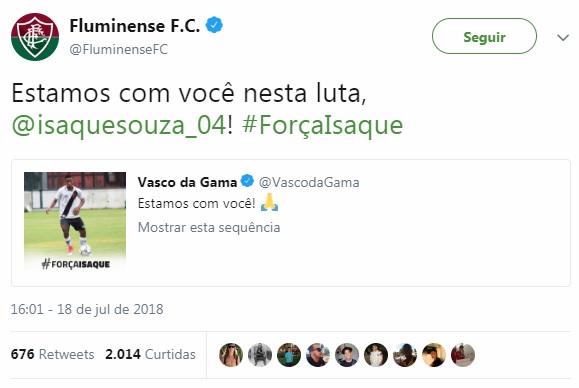 18/07/18 - Infantil: Via Twitter, Vasco deseja força a Isaque Souza: 'Estamos com você!'