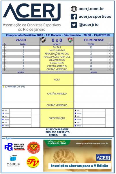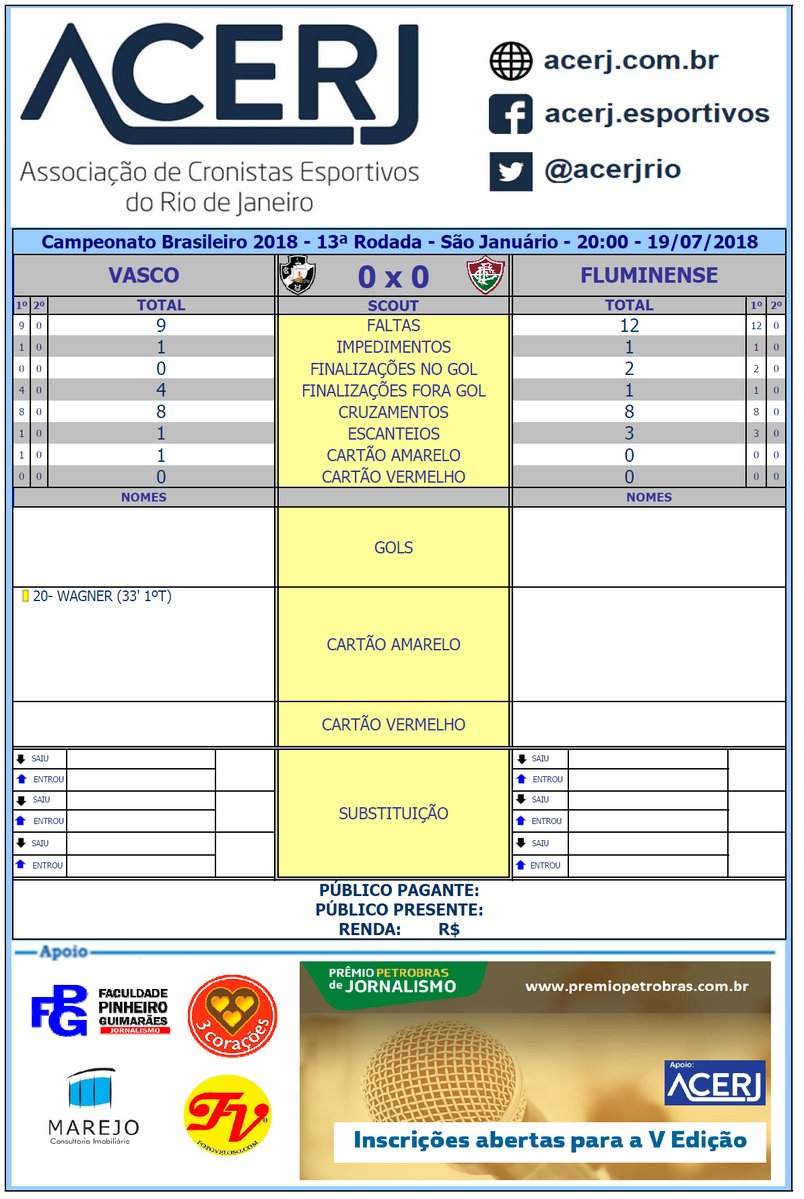 Scout do 1º Tempo de Vasco e Fluminense pela 13ª Rodada do Campeonato Brasileiro 2018 em São Januário #acerjinforma #VASxFLU #brasileirão #SerieA