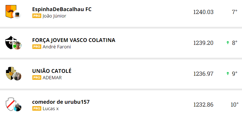 14/06/18 - Cartola FC: Confira a classificação da Liga NETVASCO após a 12ª rodada