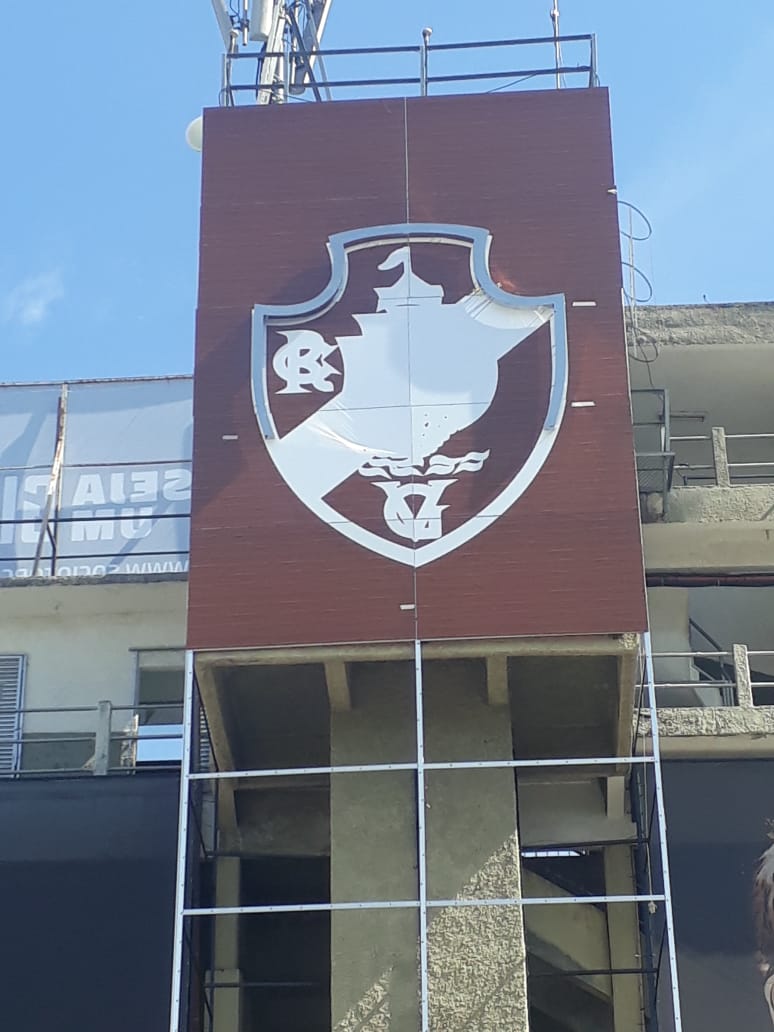 Painel com grande escudo do Vasco vai tomando forma em São Januário