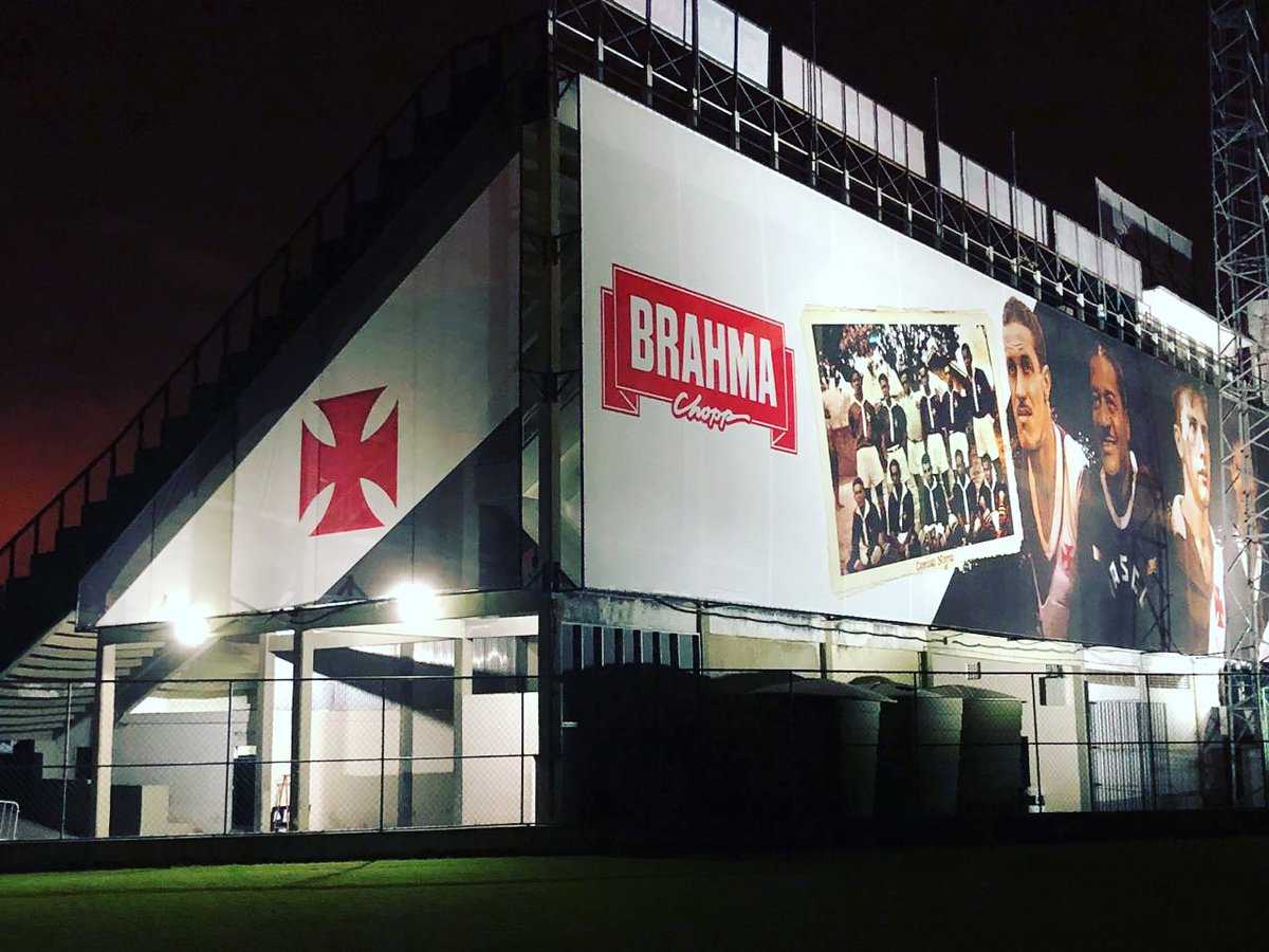 Veja foto do painel com a bandeira do Vasco na lateral da arquibancada