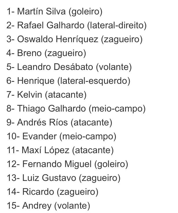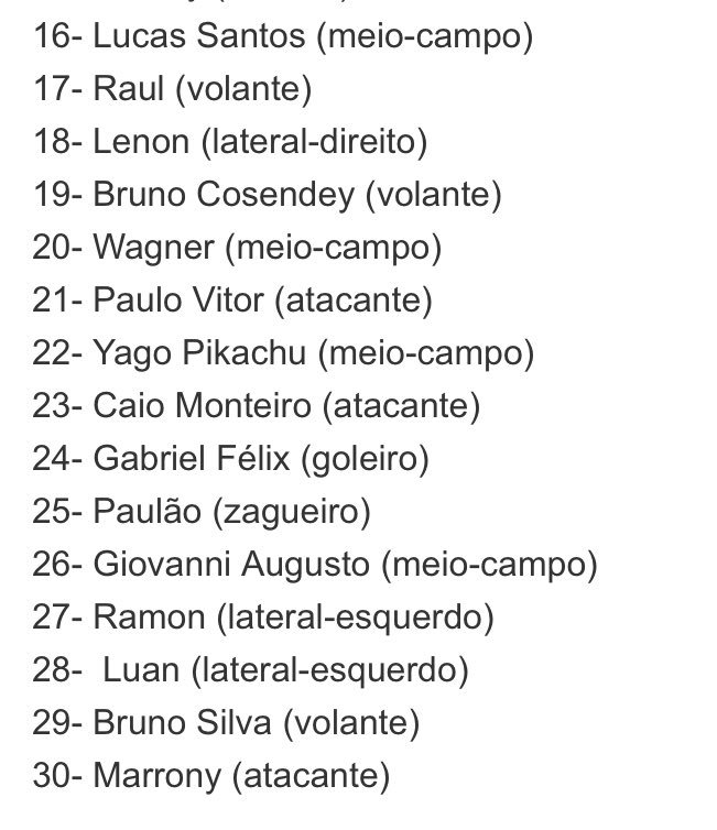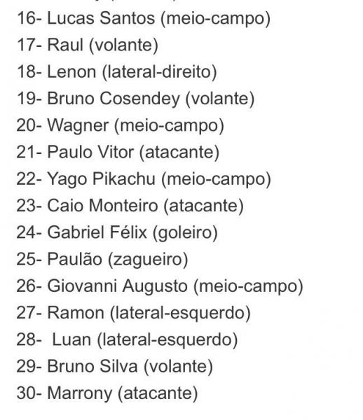 Miranda e Rildo também fora. Mudanças na numeração: Lucas Santos pega a #16, Henrique a #6 de Fabricio, Marrony a #30, Raul #17, Luan #28, Kelvin #7 e Cosendey #19