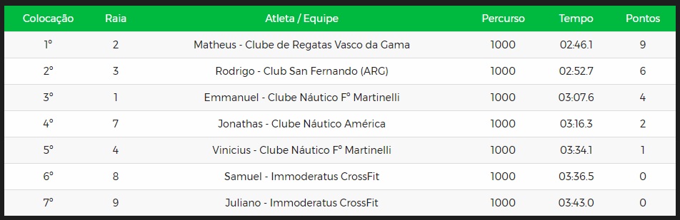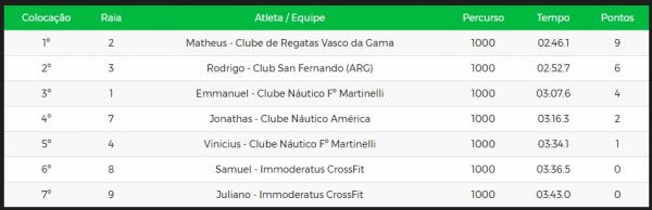 Rodrigo Murilo fez o segundo melhor tempo da prova de 1000 metros, fechou em 02'52.7 e ao final da disputa também registrou a admiração pelo adversário." Matheus é muito bom, é muito forte. Mas eu quero voltar aqui, eu não gosto de perder e por isso eu pretendo voltar para vencer este desafio", finalizou Rodrigo Murillo.