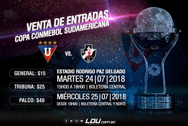 ¡No te quedes fuera! ¡Las entradas para el partido #LDUvsVAS por #CopaSudamericana salen a la venta mañana a a partir de las 15h00!