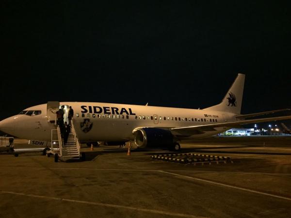 Rumo a Quito, delegação faz pausa em Manaus para reabastecimento; avião tem o escudo do Vasco