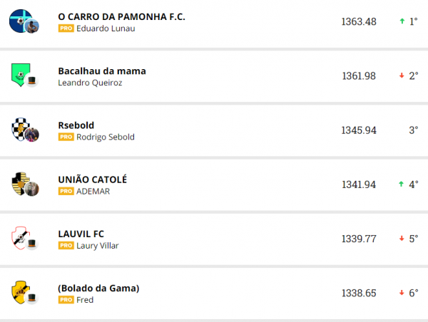 14/06/18 - Cartola FC: Confira a classificação da Liga NETVASCO após a 12ª rodada