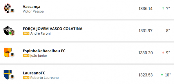 20/07/18 - Cartola FC: Confira a classificação da Liga NETVASCO após a 13ª rodada