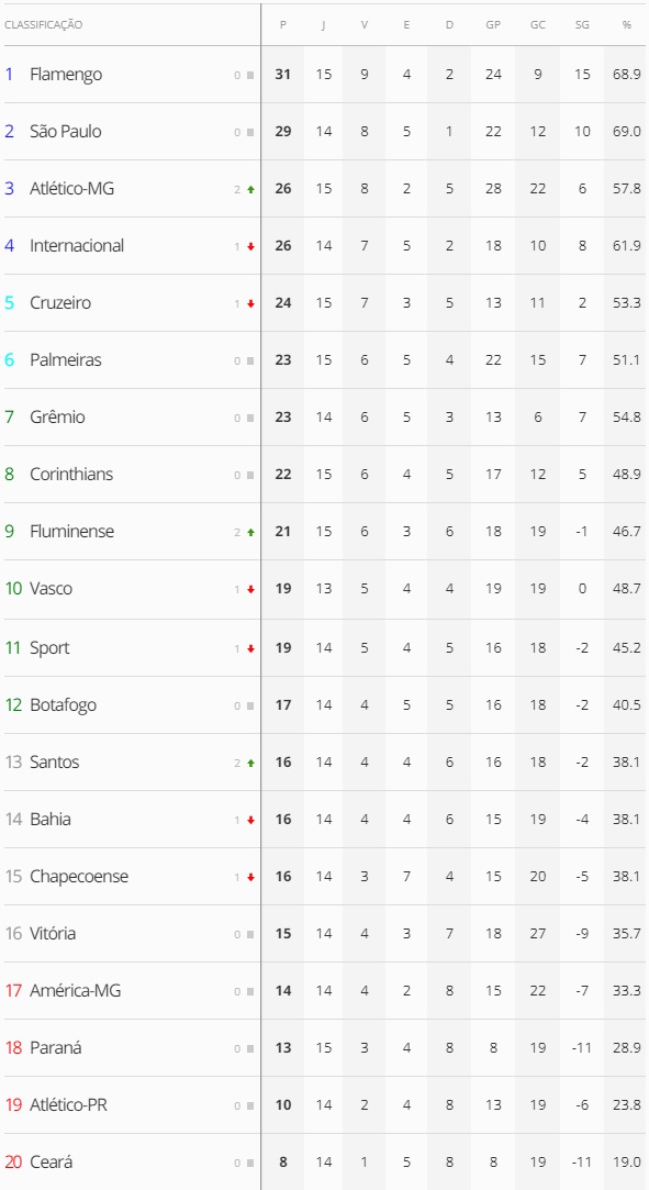 Com mais um jogo adiado no Brasileiro (contra o Atlético-PR, em Curitiba) devido à sua participação na Sul-Americana, o Vasco perdeu uma posição na tabela na 15ª rodada do Brasileiro devido à vitória do Fluminense.