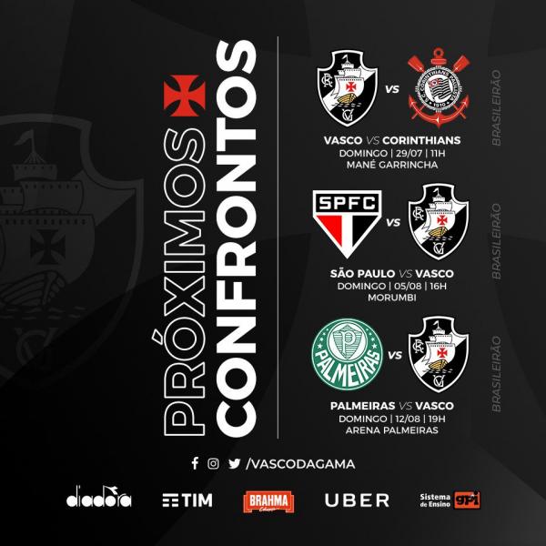 Vasco enfrenta 3 paulistas em sequência no Brasileiro
