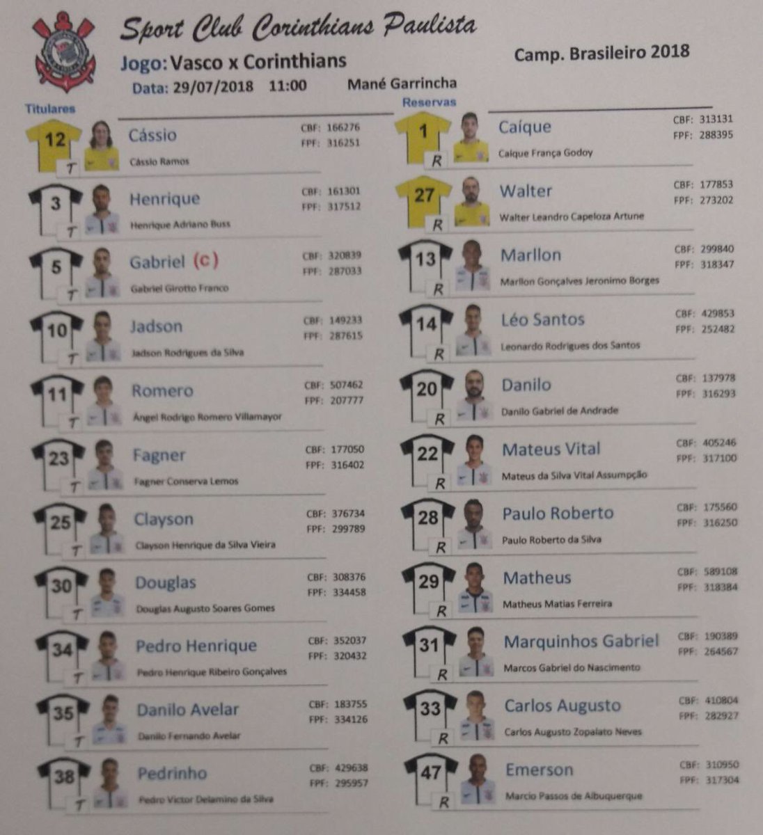 Corinthians: Cássio, Fagner, Pedro Henrique, Henrique e Avelar; Gabriel e Douglas; Pedrinho, Jadson, Romero e Clayson. #trmane