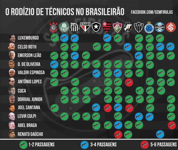 Diagrama mostra rodízio dos técnicos pelos maiores times brasileiros; veja