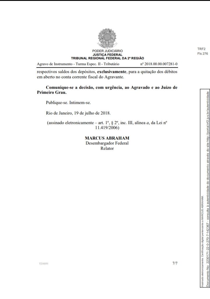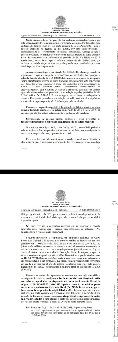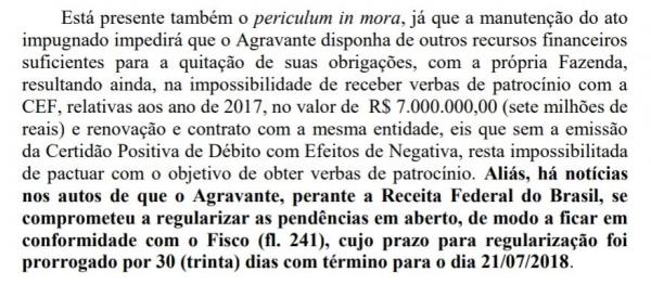 Como a decisão do TRF-2 dos tweets anteriores é grande, destaquei para verem o trecho que o magistrado argumenta que se mantivesse ordem anterior de seguir com os R$ 28 milhões penhorados, o Vasco continuaria impedido de obter as certidões para receber a verba da Caixa #lanceVAS