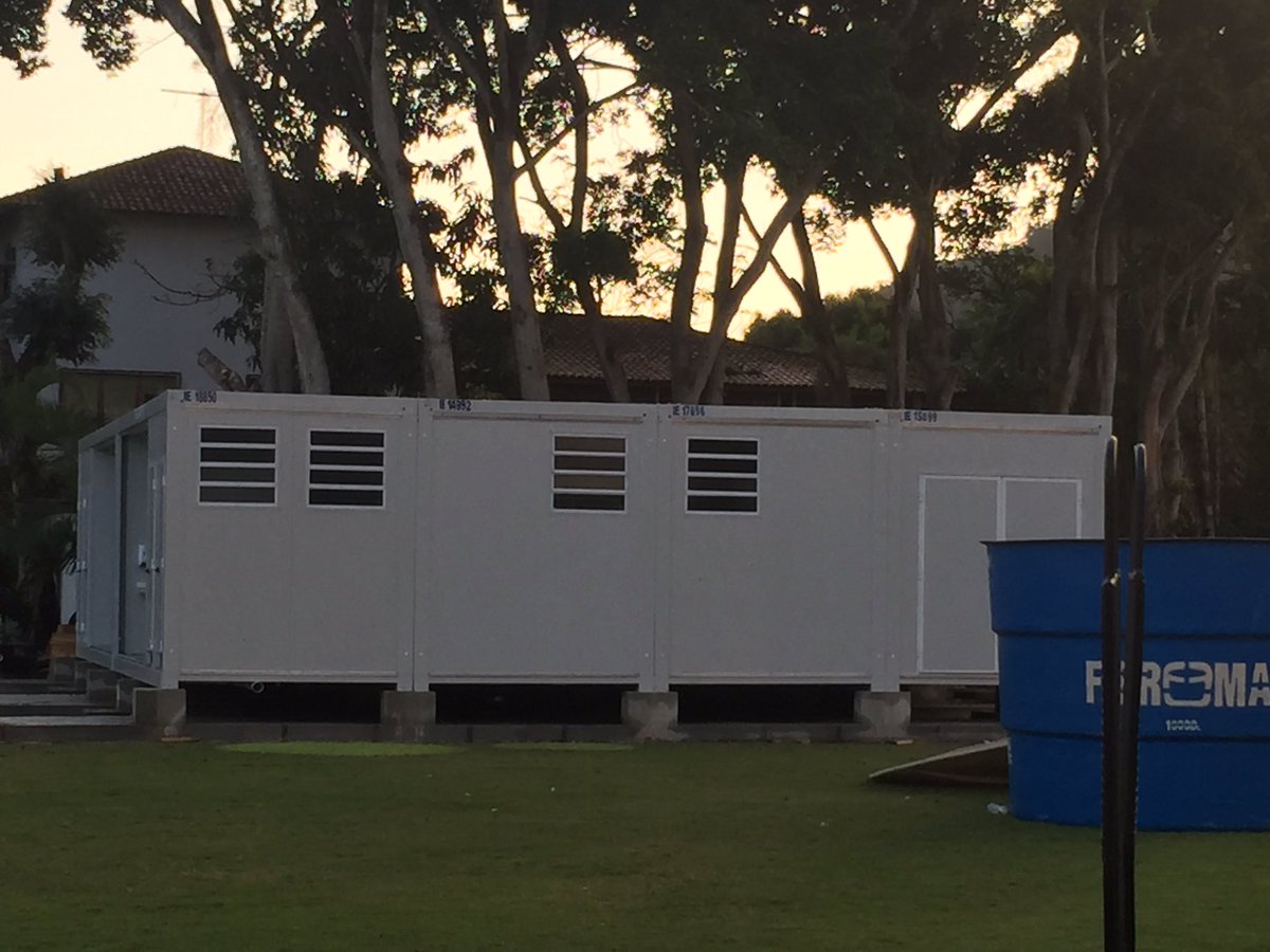 Neste container será o vestiário e a rouparia. A parte vermelha da arquibancada será pintada de preto. #gevas