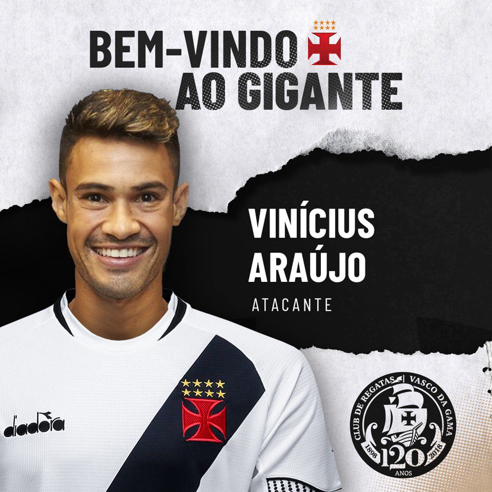 O atacante Vinícius Araújo agora é Vasco! O jogador de 25 anos chega ao Gigante da Colina para reforçar o nosso ataque. Estamos juntos, Vinícius!