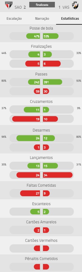 Confira estatísticas de São Paulo 2 x 1 Vasco