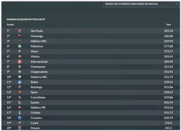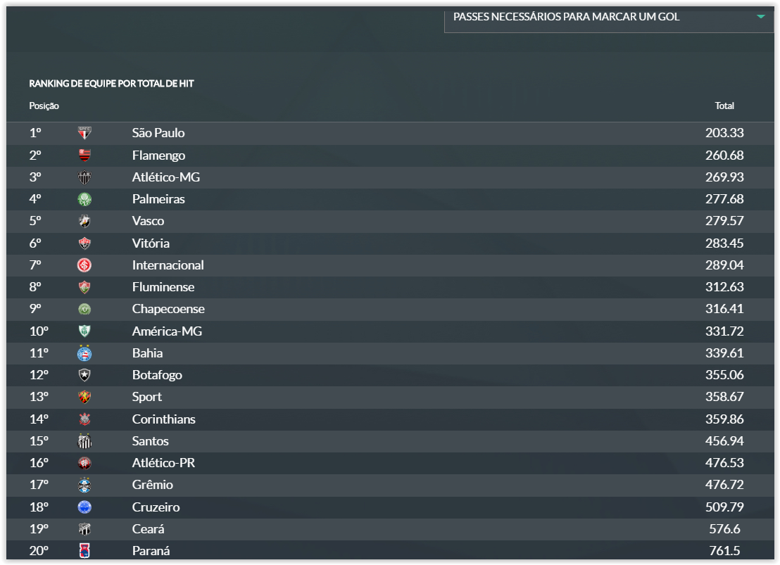 Na série A quantos passes são necessários pra se marcar 1 gol?