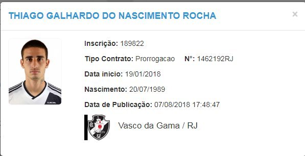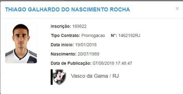 A renovação de contrato do meia @ThiagoG89 foi publicada no BID da CBF. Novo vínculo vai até dezembro de 2019.