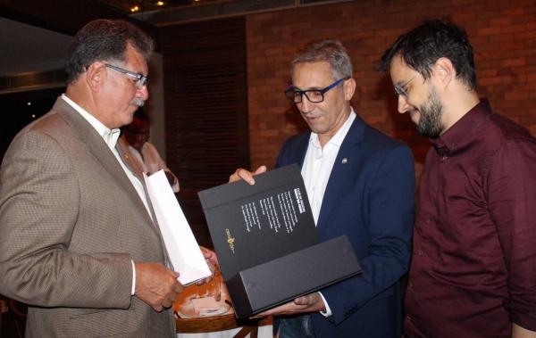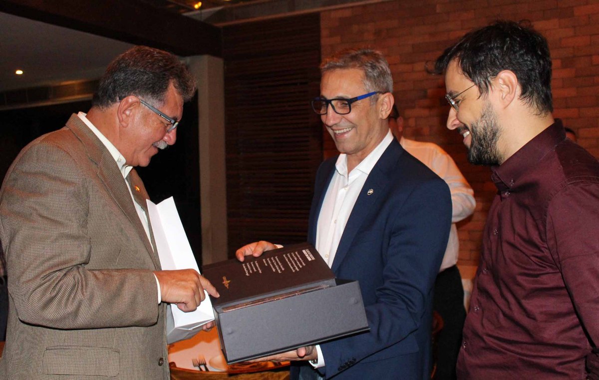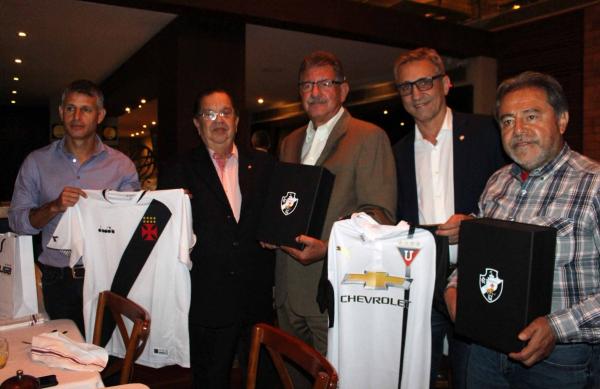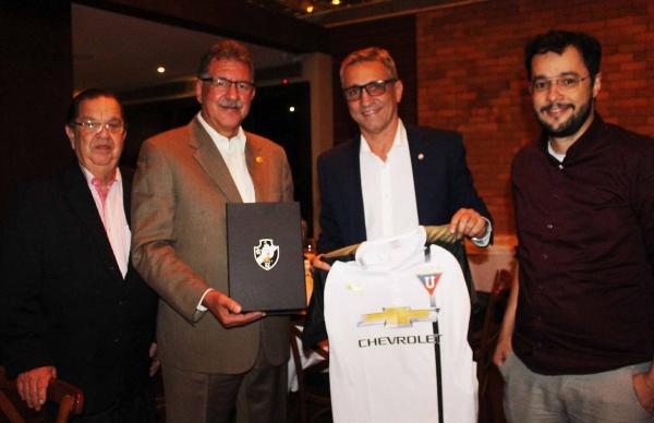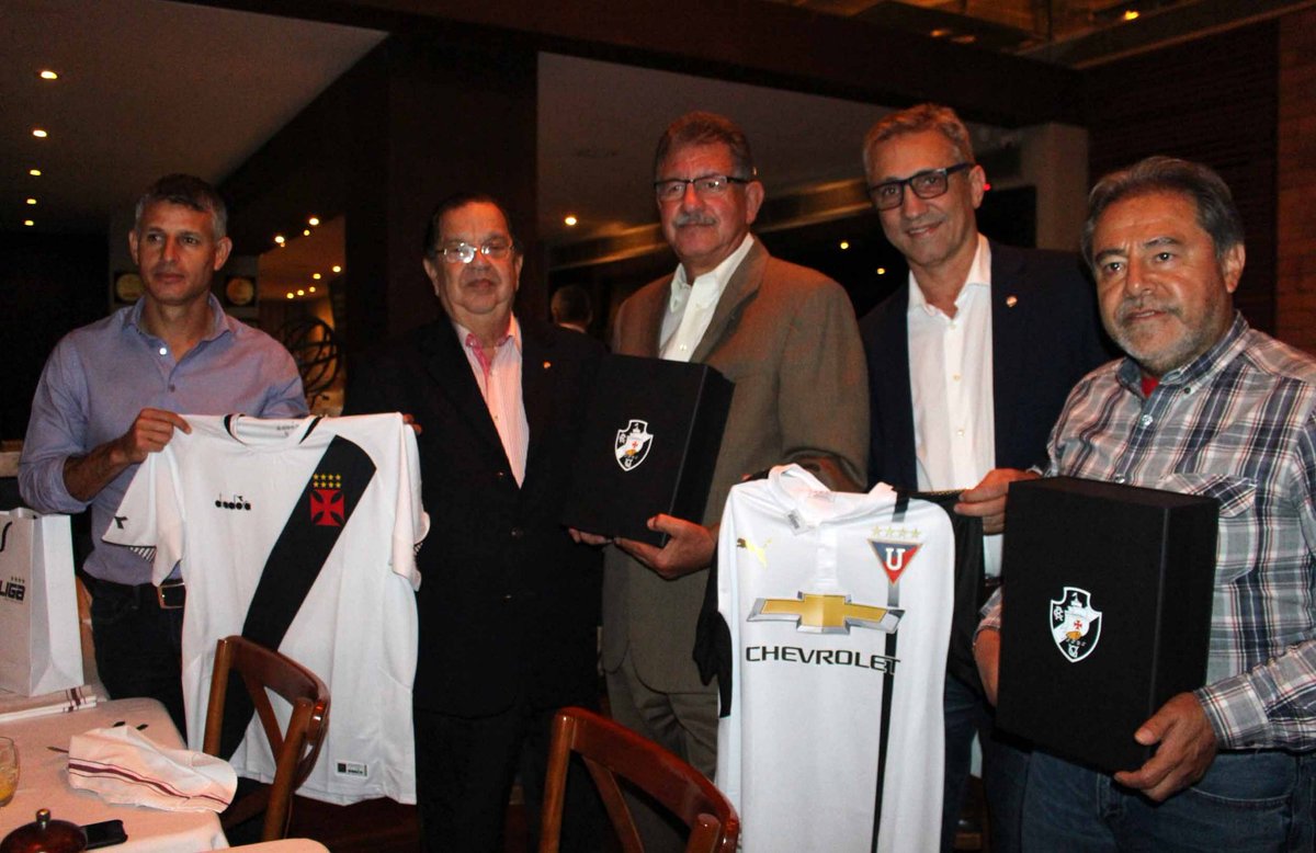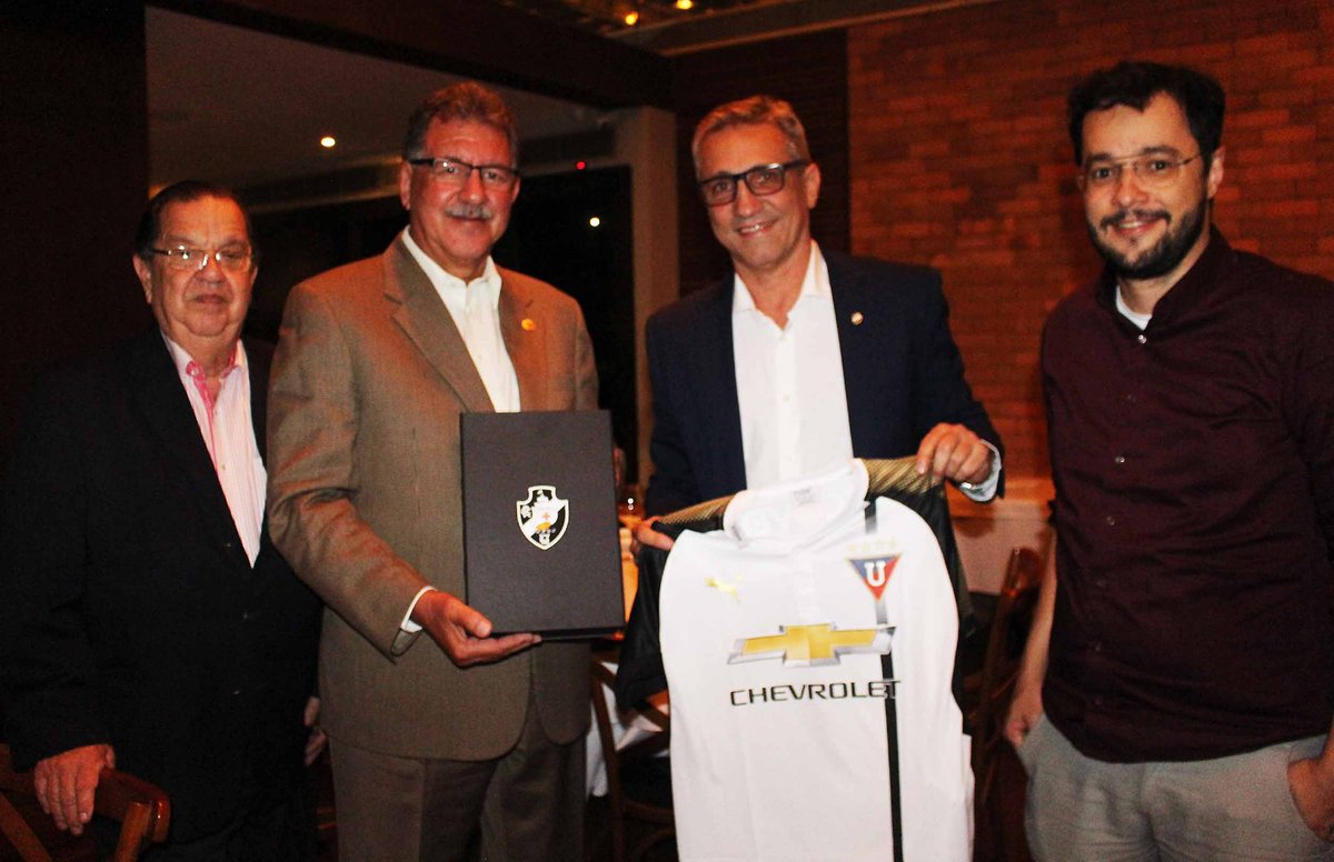 Diretorias de Vasco e LDU se reúnem em jantar e trocam presentes