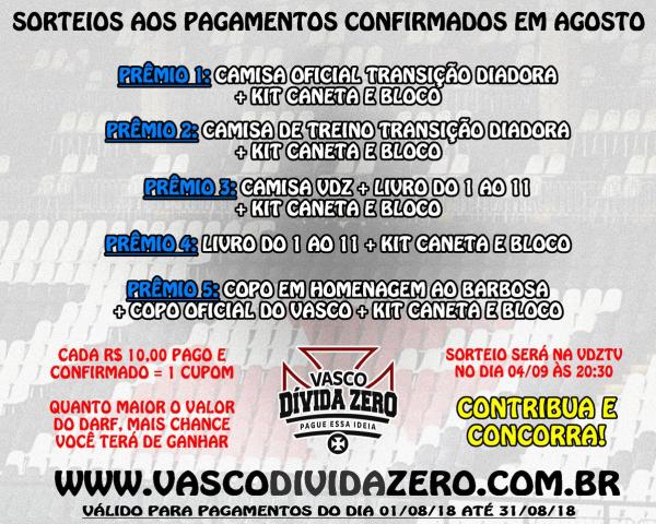 Torcedores que contribuírem para o Vasco Dívida Zero em agosto concorrerão a prêmios