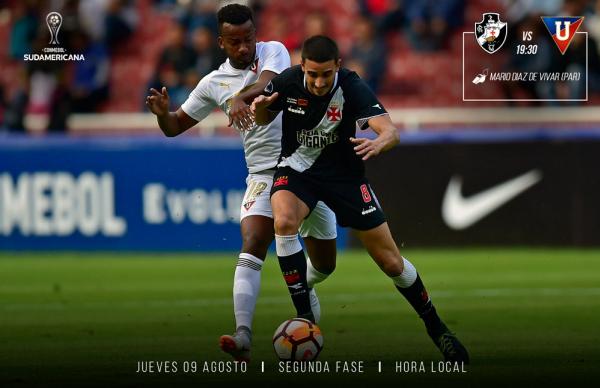 Liga de Quito visita el jueves al Vasco de Gama con la intención de validar su ventaja de 3-1 de la ida de la segunda fase de la CONMEBOL Sudamericana ante los brasileños, y sellar así el boleto a octavos de final.