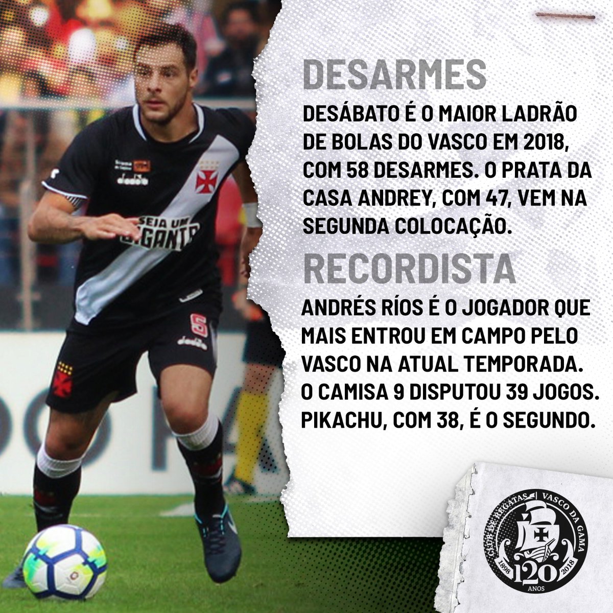 Vasco publica estatísticas e curiosidades do time em 2018; confira