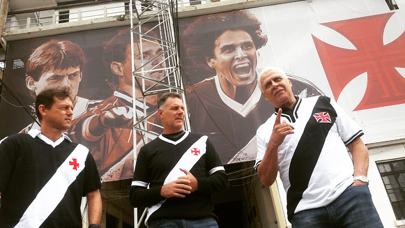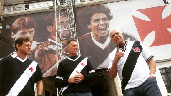Dinamite publica foto com Sorato e Carlos Germano em frente ao painel dos ídolos e agradece ao Vasco por homenagem