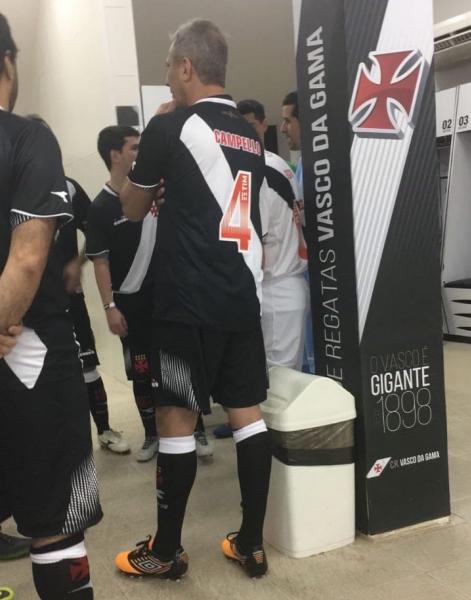 Veja foto de Campello com uniforme do Vasco; presidente usou a camisa 4 no jogo preliminar dos setoristas