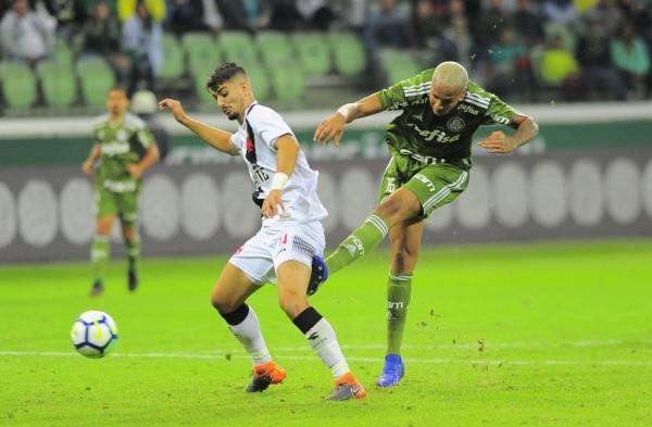 O primeiro tempo do Vasco na Arena Palmeiras foi muito bom. Com Thiago Galhardo inspirado pela esquerda e Pikachu como opção para cruzamentos pelo chão, o Cruz-Maltino jogou melhor que o adversário. Os contra-ataques rápidos funcionavam bem, apesar de as finalizações não entrarem.