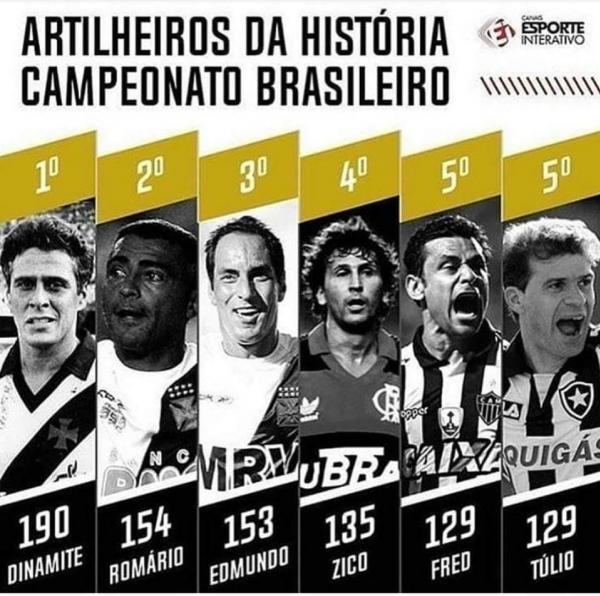 Vasco revelou os 3 maiores artilheiros da história do Campeonato Brasileiro; relembre