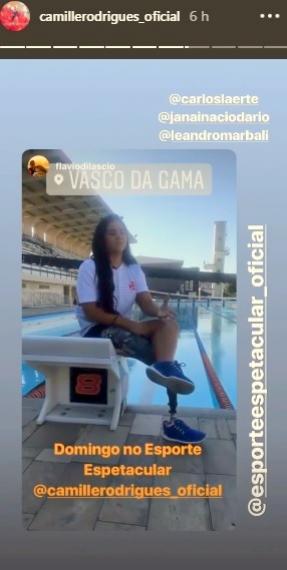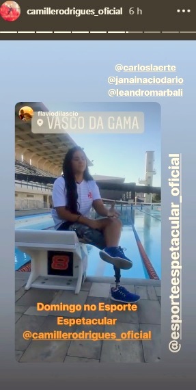 Natação Paralímpica: Camille Rodrigues grava para o 'Esporte Espetacular' no parque aquático do Vasco