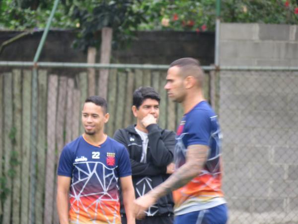 Marcos Valadares, técnico do Sub-20, acompanha o treino dos profissionais nesta 5ª-feira