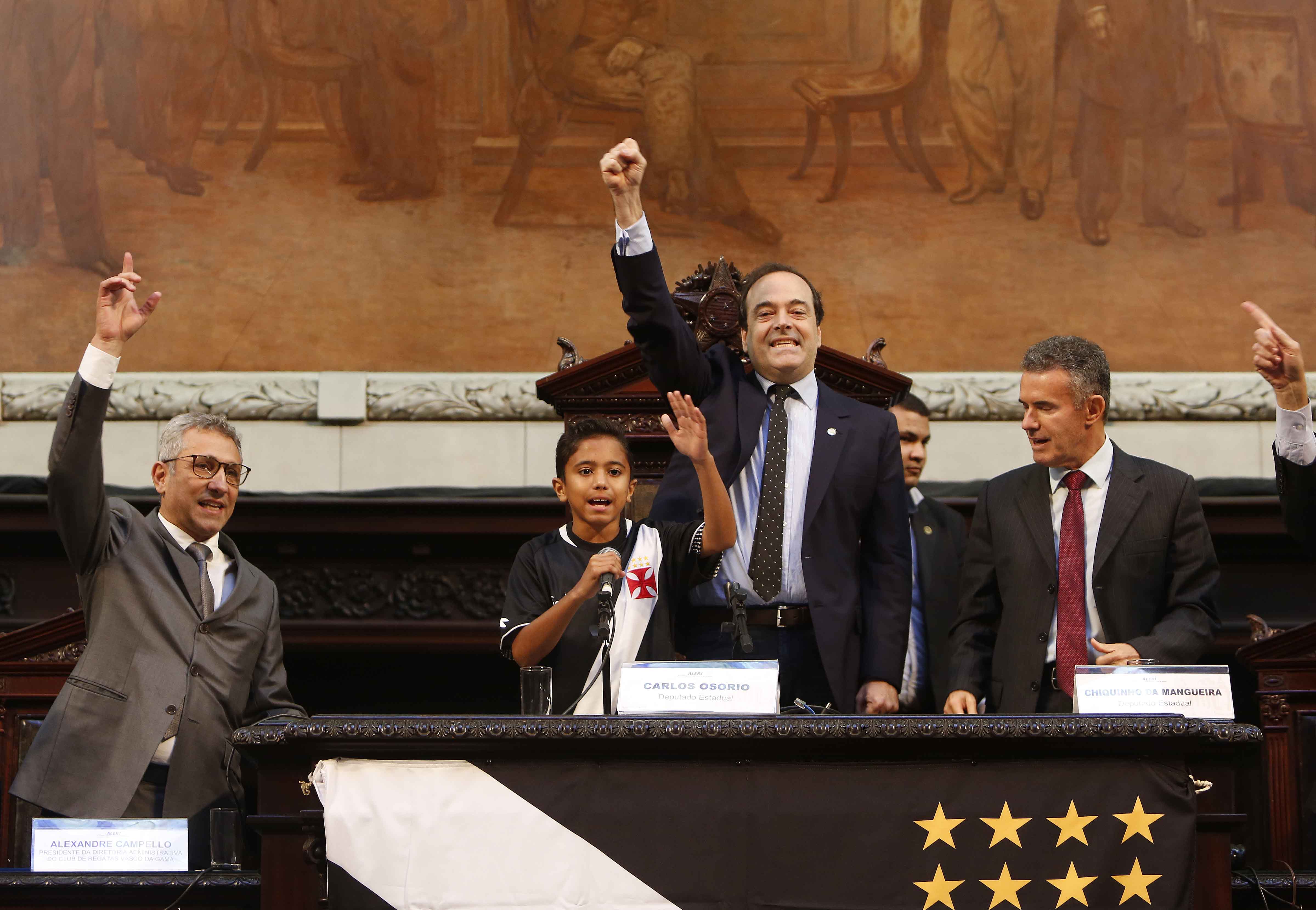 - O Vasco da Gama faz parte da vida de todos nós. É um clube único, singular e especial. Nosso clube não se caracteriza apenas pelas inúmeras vitórias esportivas no esporte brasileiro e mundial. O Vasco se representa de maneira mais intensa, pela nossa história. A mais linda do futebol mundial. O Vasco da Gama enfrentou todos os preconceitos com grandeza e dignidade - disse o deputado estadual Carlos Roberto Osorio.