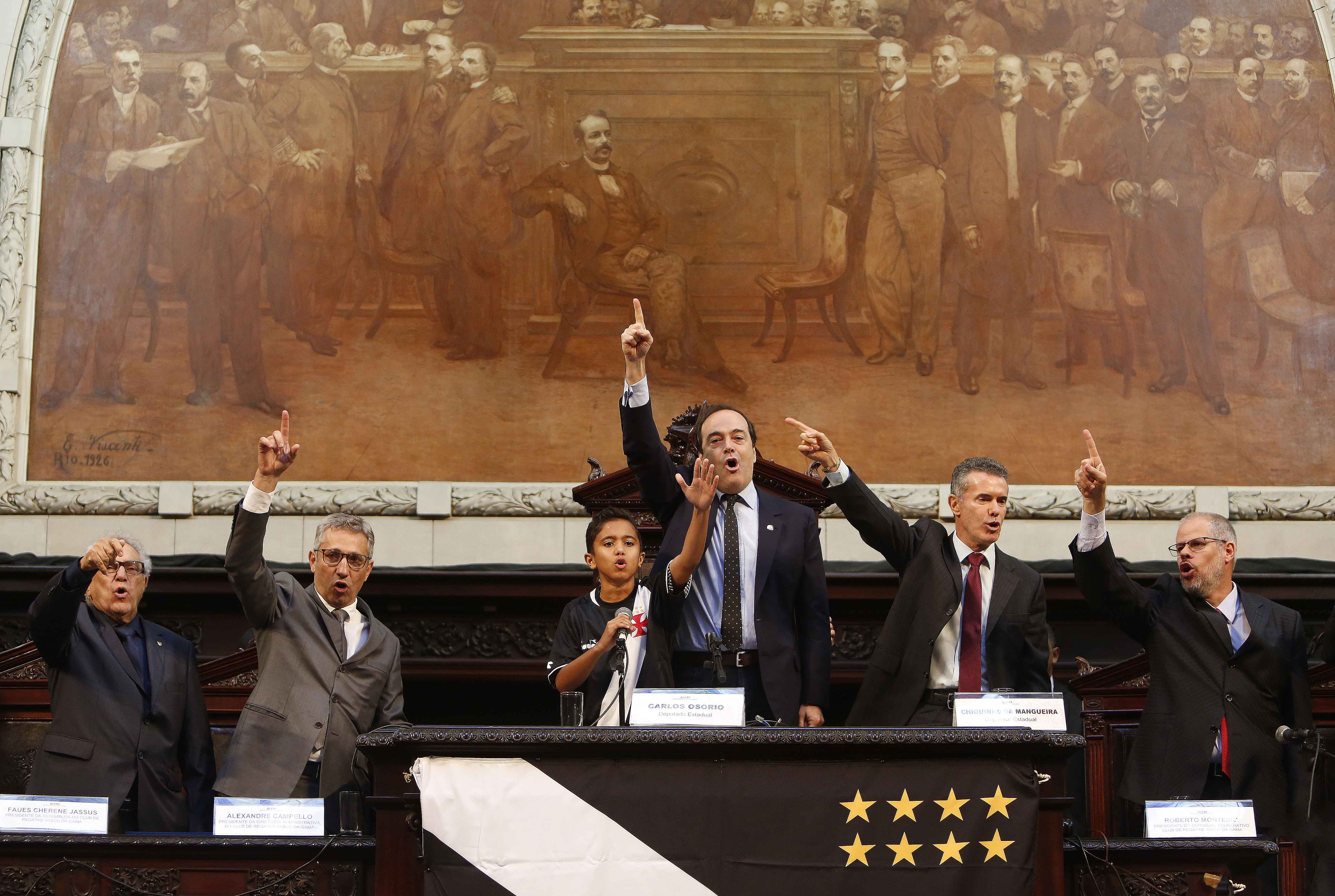 No início da sessão, os hinos do Brasil, Portugal e do Club de Regatas Vasco da Gama foram entoadas no Plenário Barbosa Lima Sobrinho. Depois, todos os membros que compuseram a mesa discursaram, além de alguns grandes beneméritos, conselheiros, o superintendente de relações internacionais do Comitê Brasileiro de Clubes e do também deputado estadual Flávio Bolsonaro.