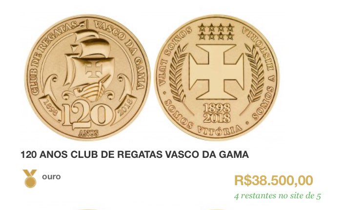 Eis que foi vendida a primeira medalha comemorativa de ouro. Nada mais nada menos que R$ 38.500. Restam apenas quatro unidades. 🤑